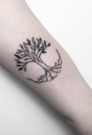 女生手臂上黑色线条创意文艺树刺青图案图片