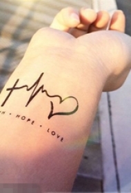 女生手腕上黑色线条文艺小清新心形心电图刺青图案图片