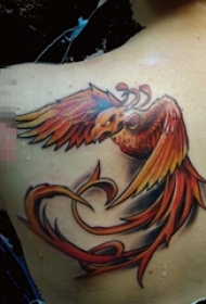 女生背部彩绘水彩创意个性红色展翅凤凰刺青图案图片