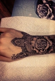 女生手臂上黑色线条素描创意玫瑰手链刺青图案图片