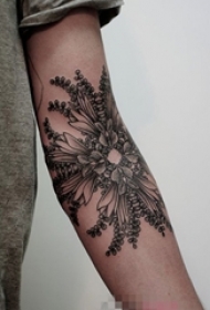 女生手臂上黑色素描创意花束刺青图案图片