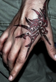 男生手背上彩绘几何线条帅气符号刺青图案图片