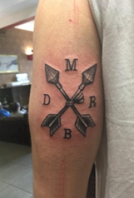手臂纹身素材 男生手臂上黑色的箭矢纹身图片