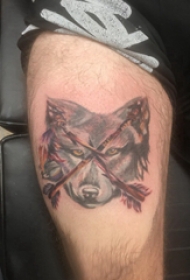 滴血狼头纹身 男生大腿上狼头和箭纹身图片
