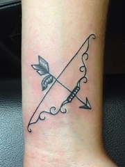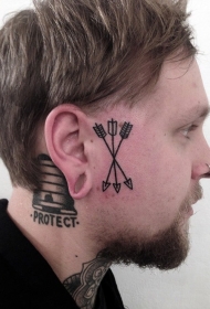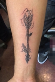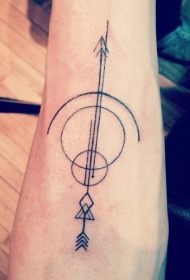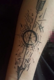 男生手臂上黑色点刺几何抽象线条箭头纹身图片