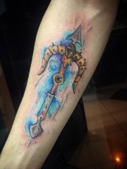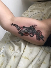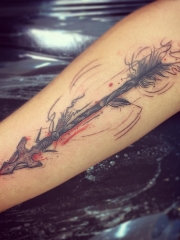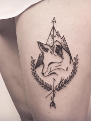 被箭射穿的一半狼身一半3D创意几何形纹身图案