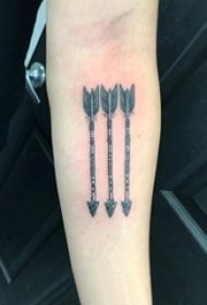 女生手臂上黑色点刺几何简单线条箭纹身图片