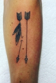 小腿对称纹身 男生小腿上黑色的箭纹身图片
