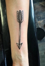 女生手臂上黑色几何元素简单线条箭纹身图片