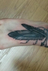 女性脚背箭头和羽毛纹身图案