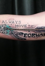 大臂古老的部落箭和英文字母纹身图案