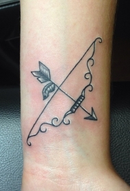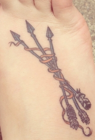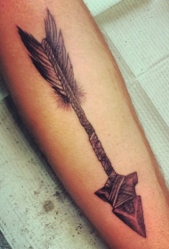 小臂彩色的鹿头和交叉步枪箭纹身图案