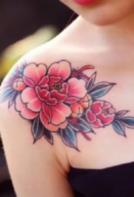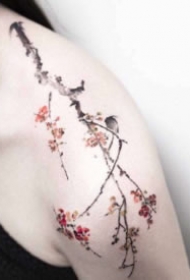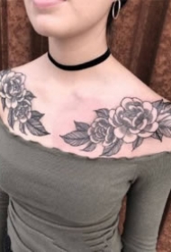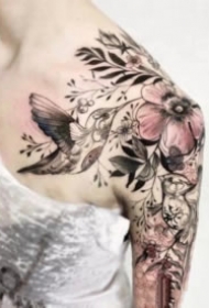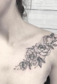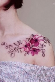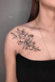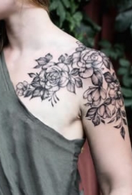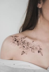 肩部素花纹身 女生锁骨和肩部性感的素花纹身作品