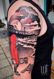 水墨画纹身 肩背部的一组中国风水墨纹身图片