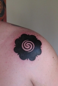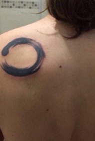 女生后肩上黑色点刺抽象线条水墨几何圆形纹身图片