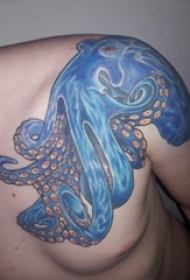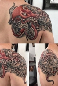 男生肩部彩绘渐变简单抽象线条章鱼纹身图片