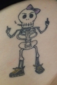男生肩部黑灰点刺简单线条骷髅纹身图片