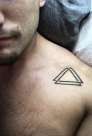 男生肩部彩绘点刺技巧几何线条卡通机器人纹身图片