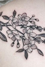 女生肩部黑灰点刺简单线条小清新植物花朵纹身图片