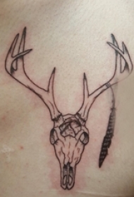 男生肩部黑色点刺简单抽象线条动物鹿头骨纹身图片