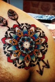 肩部老学校的曼陀罗花箭纹身图案