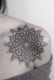 女性肩部可爱的曼陀罗花纹身图案