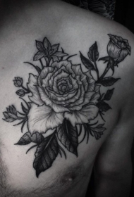 肩部黑灰色逼真的玫瑰花纹身图案
