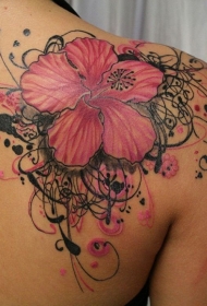 肩部水彩色夏威夷花纹身图案