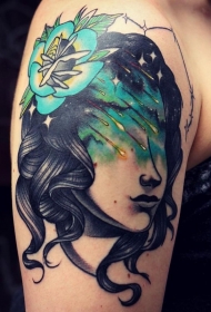手臂新风格的彩色哭泣女人与蜡烛纹身
