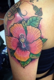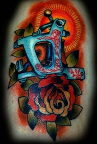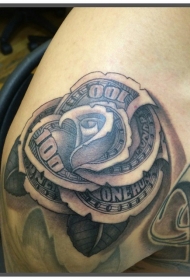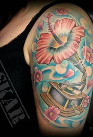 肩部古老的彩色长凳与玫瑰花纹身图片