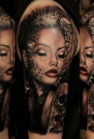 大臂彩色女郎和骷髅头纹身图案