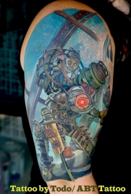 大臂彩色肩娃娃与机器人纹身图案