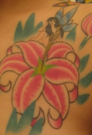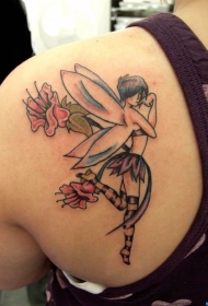 背部童话里的小王子坐在水彩风格星球纹身图案