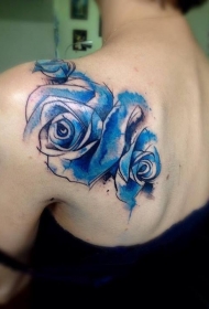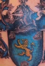 肩部蓝色背景百合花纹章撕皮纹身图案