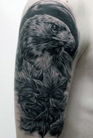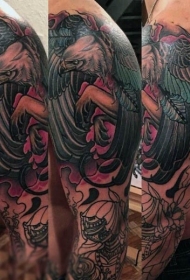 school彩色鹰枫叶手臂纹身