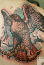 背部令人印象深刻的彩色鹰纹身图案