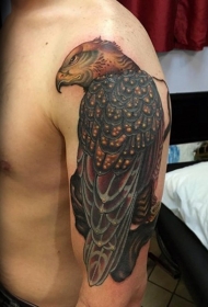 大臂细致的彩色鹰纹身图案