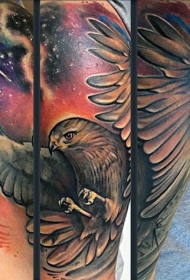手臂彩色飞行的鹰和星空纹身图案