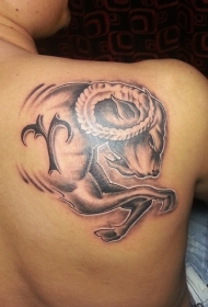 后背彩色山羊与星座符号纹身图案