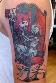 大臂彩色僵尸夫妇和幽灵纹身图案