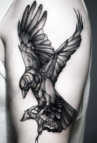 大臂点刺乌鸦抓蛇纹身图案
