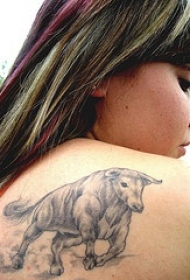 后背娇嫩的粉红色荷花和蝴蝶纹身图案