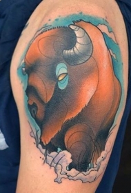 大臂自然好看的彩色花卉蝴蝶纹身图案