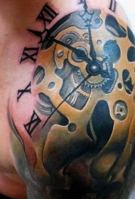 大臂五彩泼墨的神秘眼睛时钟纹身图案