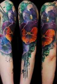 大臂美丽的彩绘各种花朵纹身图案