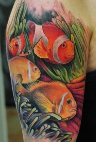 大臂美丽的写实海底鱼纹身图案