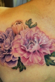 背部美丽的彩色写实花朵纹身图案
