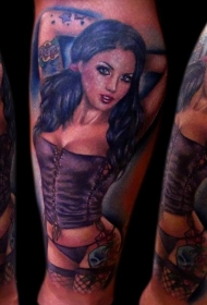 美丽的手绘彩色性感女人纹身图案