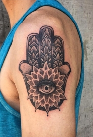 大臂美丽的点刺法蒂玛之手纹身图案
