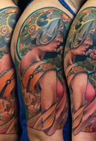 大臂令人惊叹的彩色女子纹身图案
